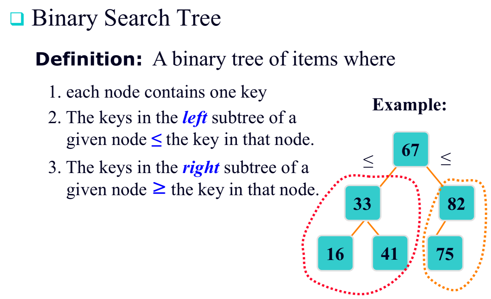 - ์ฃผ์ด์ง ๋ ธ๋์ ์ผ์ชฝ ์๋ธํธ๋ฆฌ์ ์๋ key๋ค์ ์ฃผ์ด์ง ๋ ธ๋์ ํค๋ณด๋ค ์๊ฑฐ๋ ๊ฐ์