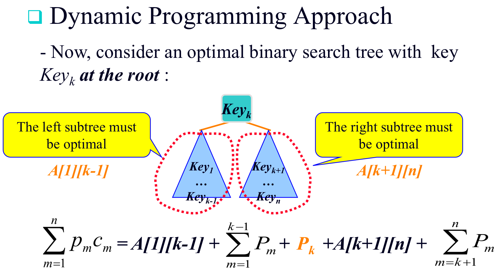 A[i][j] = min(A[i][k-1] + A[k+1][j] + โ Pm